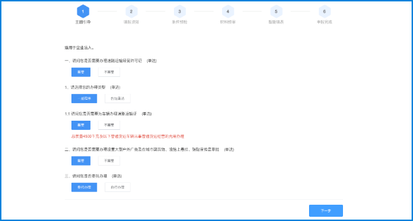 1、从事危险货物运输经营以外的货运经营的,向县级人民政府交通运输主管部门提出申请;