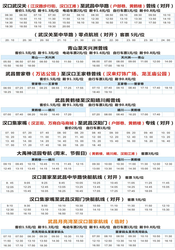 武汉市轮渡航线分布一览表