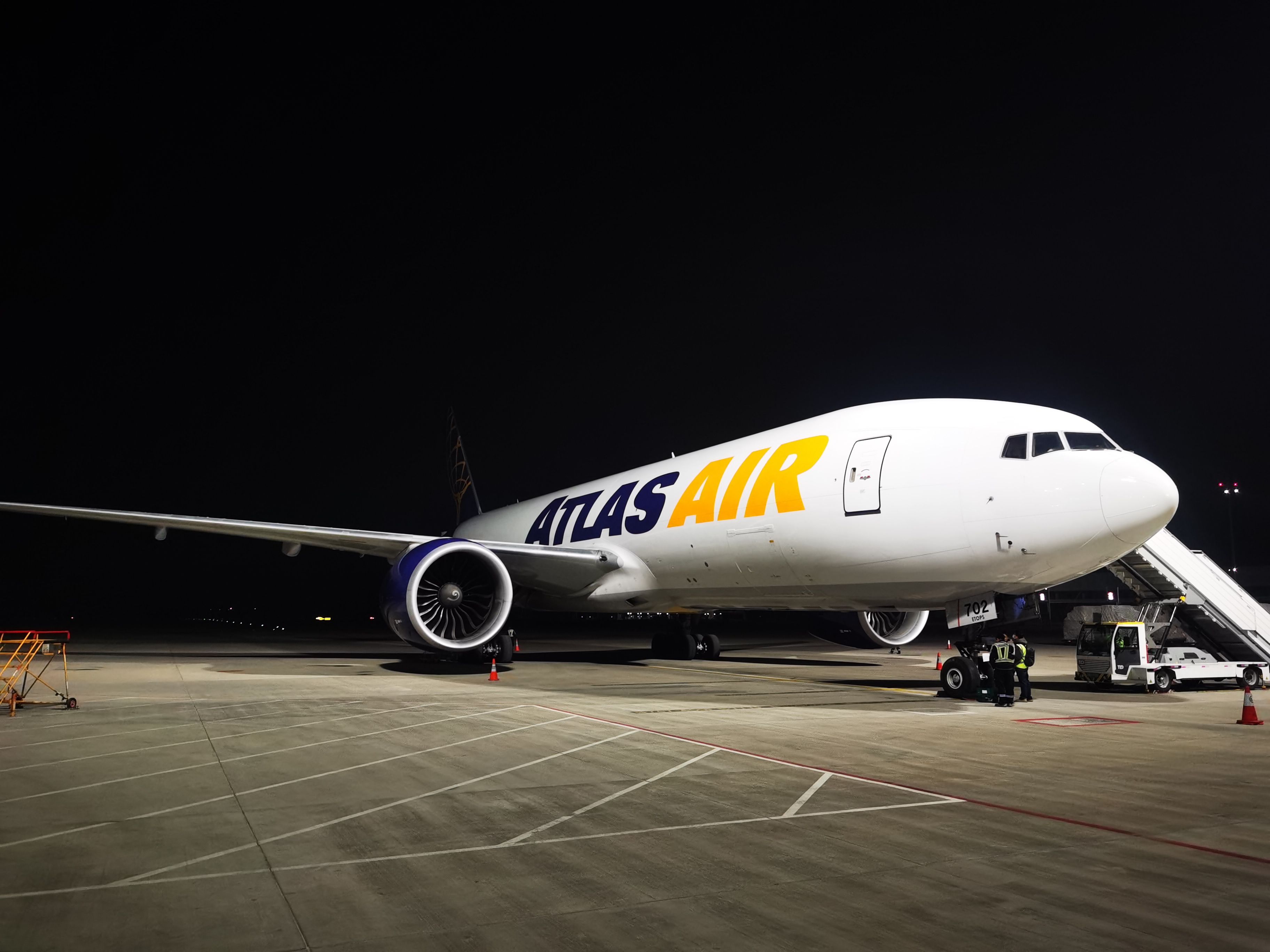 1月1日傍晚,一架来自北美洲的阿特拉斯货机平稳降落在鄂州花湖国际机场。机舱门开启,一批“跨洋旅行”了十余小时的波士顿龙虾,被迅速转运至冷链车。约两小时后,它们就出现在武汉各大生鲜市场和餐厅。