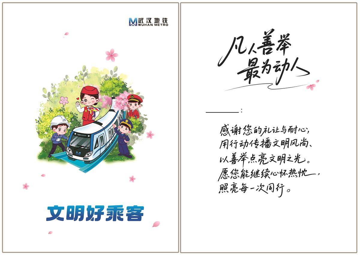 凡人善举,最为动人。从2026年起,武汉地铁线网所有车站配备了“文明好乘客”纪念卡片,以此感谢那些在出行途中主动伸出援手、传递善意的好心乘客。