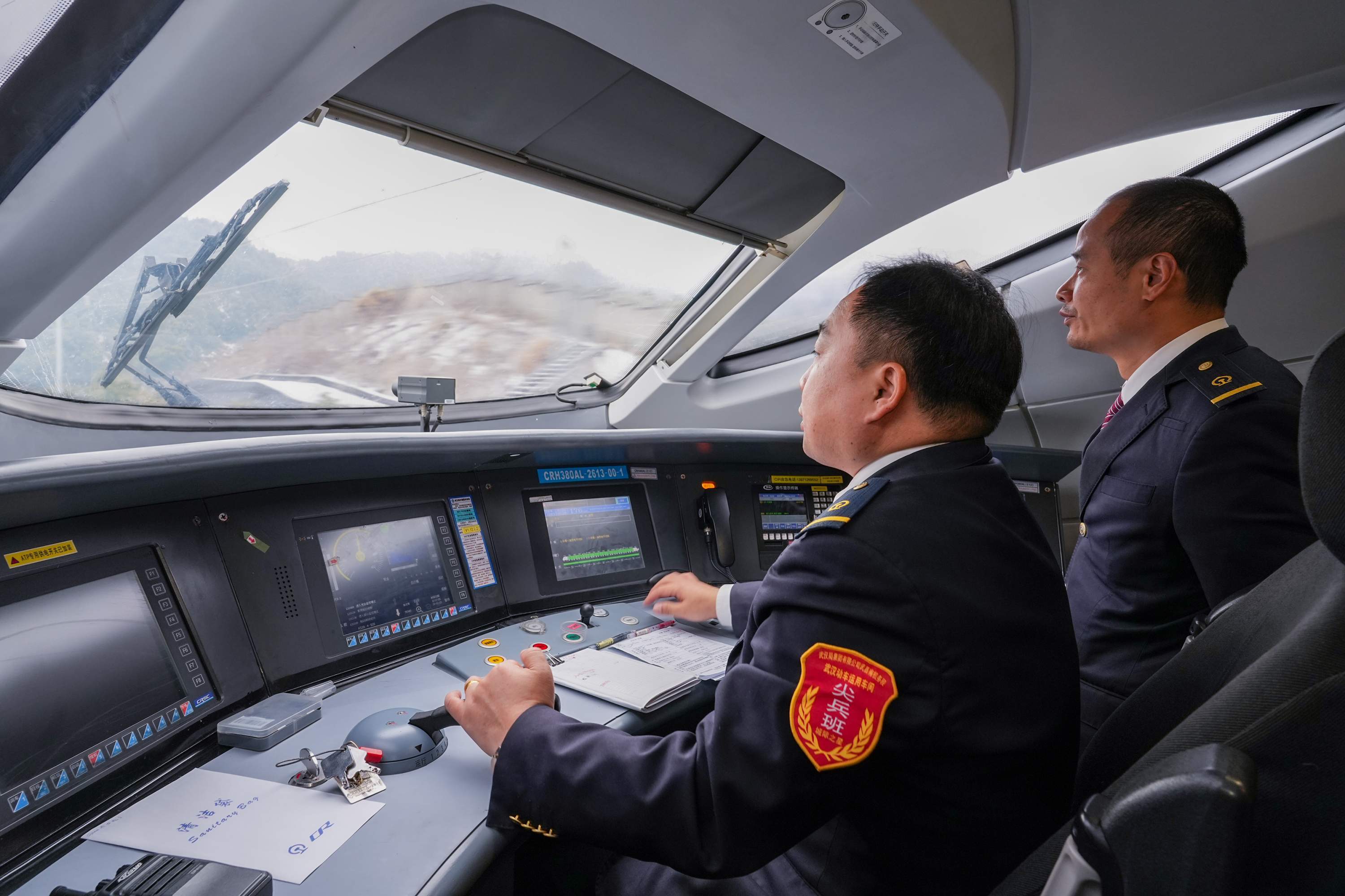 1月20日凌晨2时整,武汉动车基地灯火通明。55314次热滑动车组驾驶室内,动车司机张伟牢牢盯住仪表盘。“网压稳定。”他低声确认,轻轻推柄。列车亮起灯光,缓缓驶入雪夜。