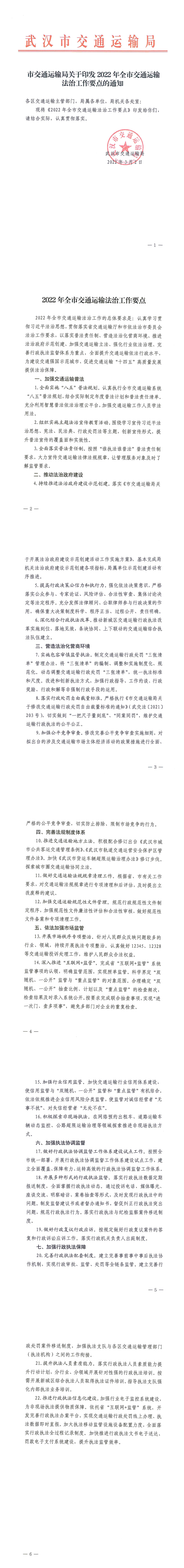 市交通运输局关于印发2022年全市交通运输法治工作要点的通知