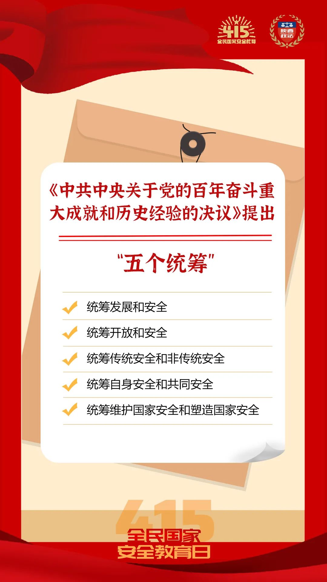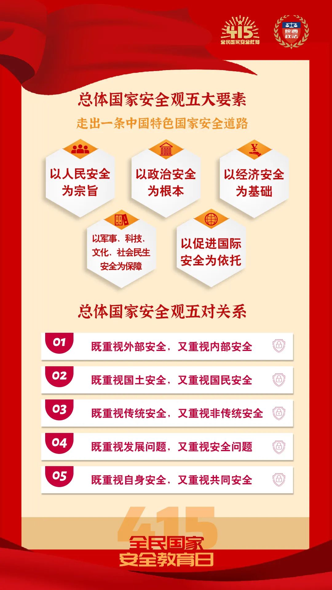 2015年7月1日,全国人大常委会通过的国家安全法规定,国家加强国家安全新闻宣传和舆论引导,通过多种形式开展国家安全宣传教育活动,将国家安全教育纳入国民教育体系和公务员教育培训体系,增强全民国家安全意识,并将每年4月15日确定为全民国家安全教育日。
