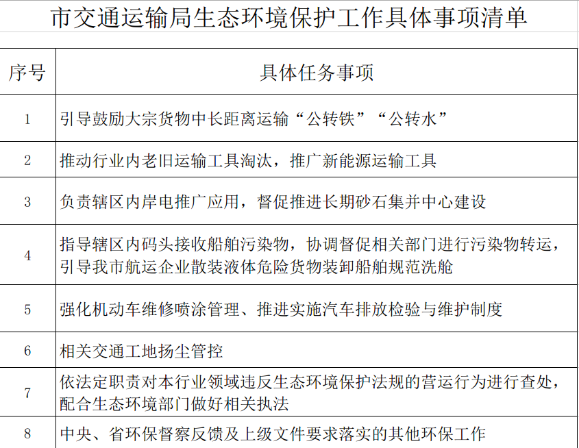 市交通运输局生态环境保护工作具体事项清单