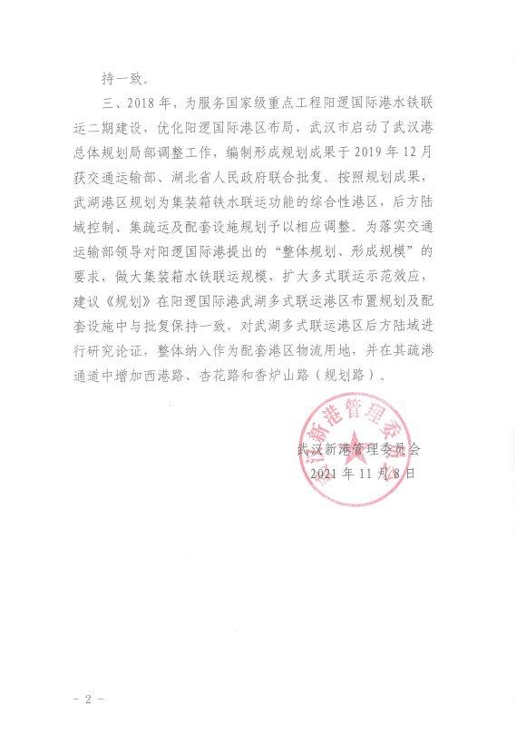 1)进一步推进区港联动、多式联运发展。完善东湖综合保税区建设,将保税功能延伸至花山港,促进港区联动。加快推进北湖铁路建设,从花山港整合天河机场、吴家山铁路中心站、阳逻港等重要交通枢纽,打造虚拟物流港,促进花山港铁水联运发展。