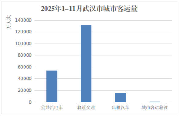1-11,全市城市客运量完成201995.09万人次。分方式看,公共电车客运量完成54054.94万人次;轨道交通客运量完成131841.38万人次;巡游出租车客运量完成15567.68万人次;客运轮渡客运量完成531.09万人次。