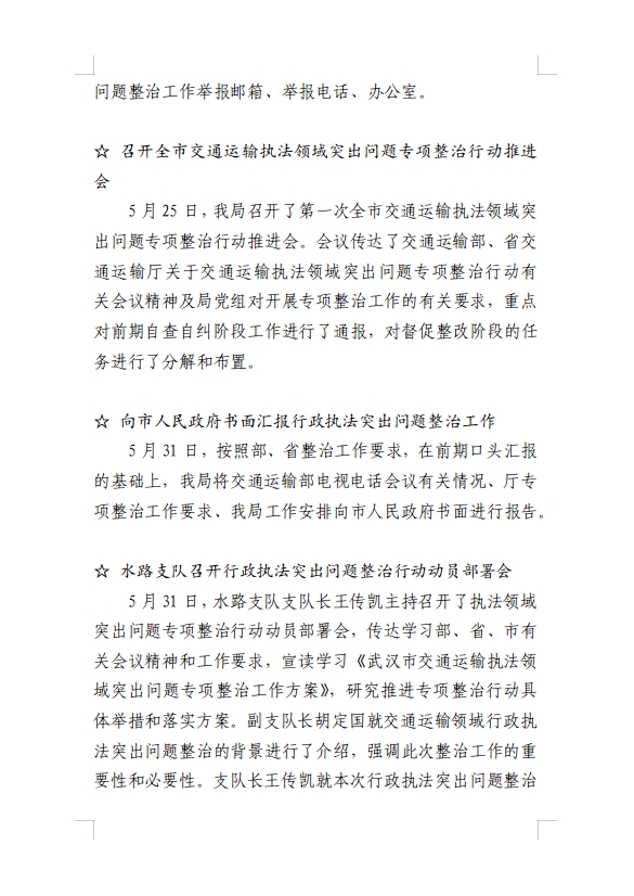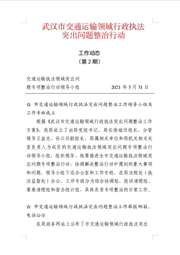 武汉市交通运输领域行政执法突出问题整治行动工作动态(第2期)