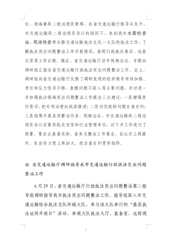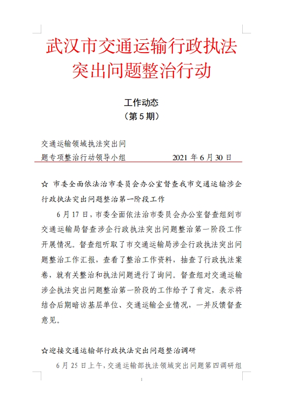 武汉市交通运输领域行政执法突出问题整治行动工作动态(第5期)